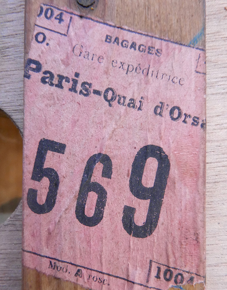 A luggage label from the Gare d’Orsay was found affixed to the internal edge of the frame. Since the station was in operation from 1900 to 1939, it is likely that the frame was made during this period or prior to these dates.