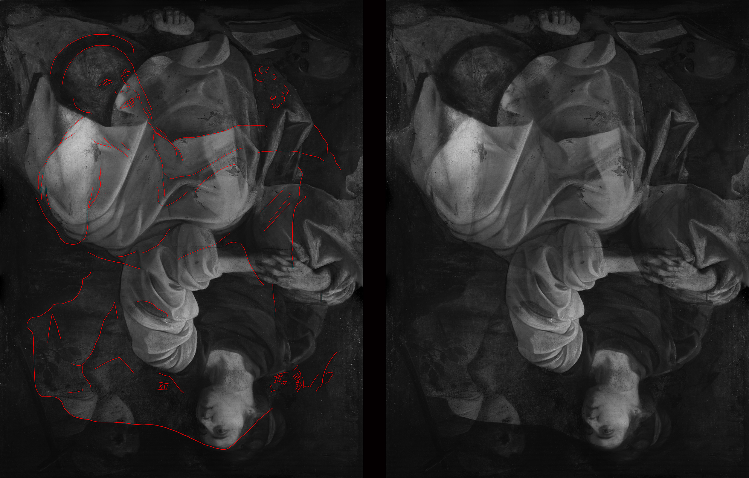 Réflectographie infrarouge avec et sans relevés / ©RES