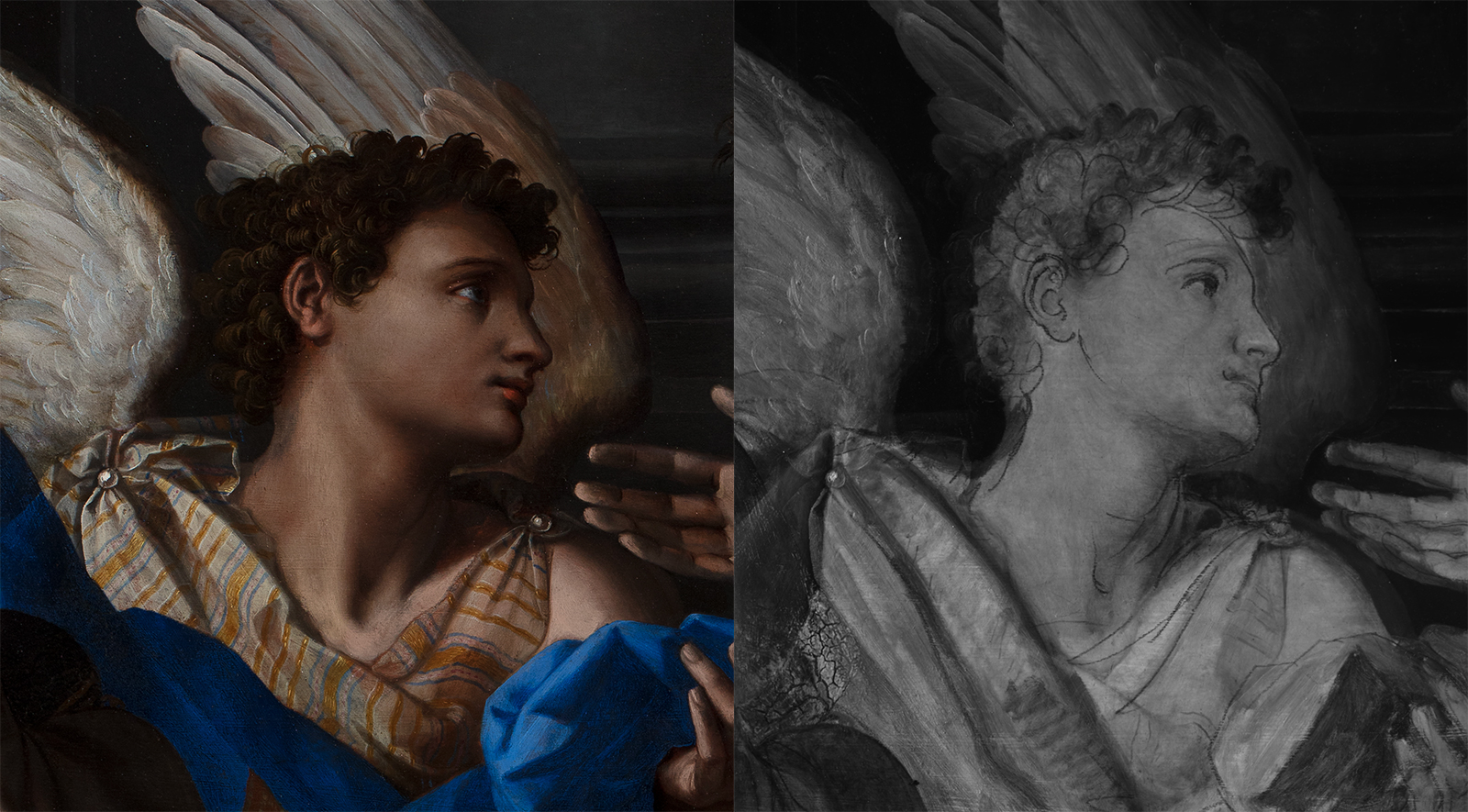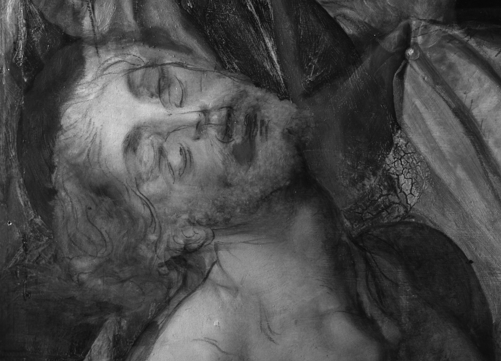 L’utilisation de la réflectographie infrarouge a fourni des informations fascinantes sur le processus de l’artiste, révélant la présence d’un dessin préparatoire détaillé sous la peinture, exécuté à main levée avec du charbon de bois. Cette couche préparatoire montre des repentirs significatifs dans la composition, en particulier dans le positionnement et les détails du visage, des bras et des jambes du Christ.